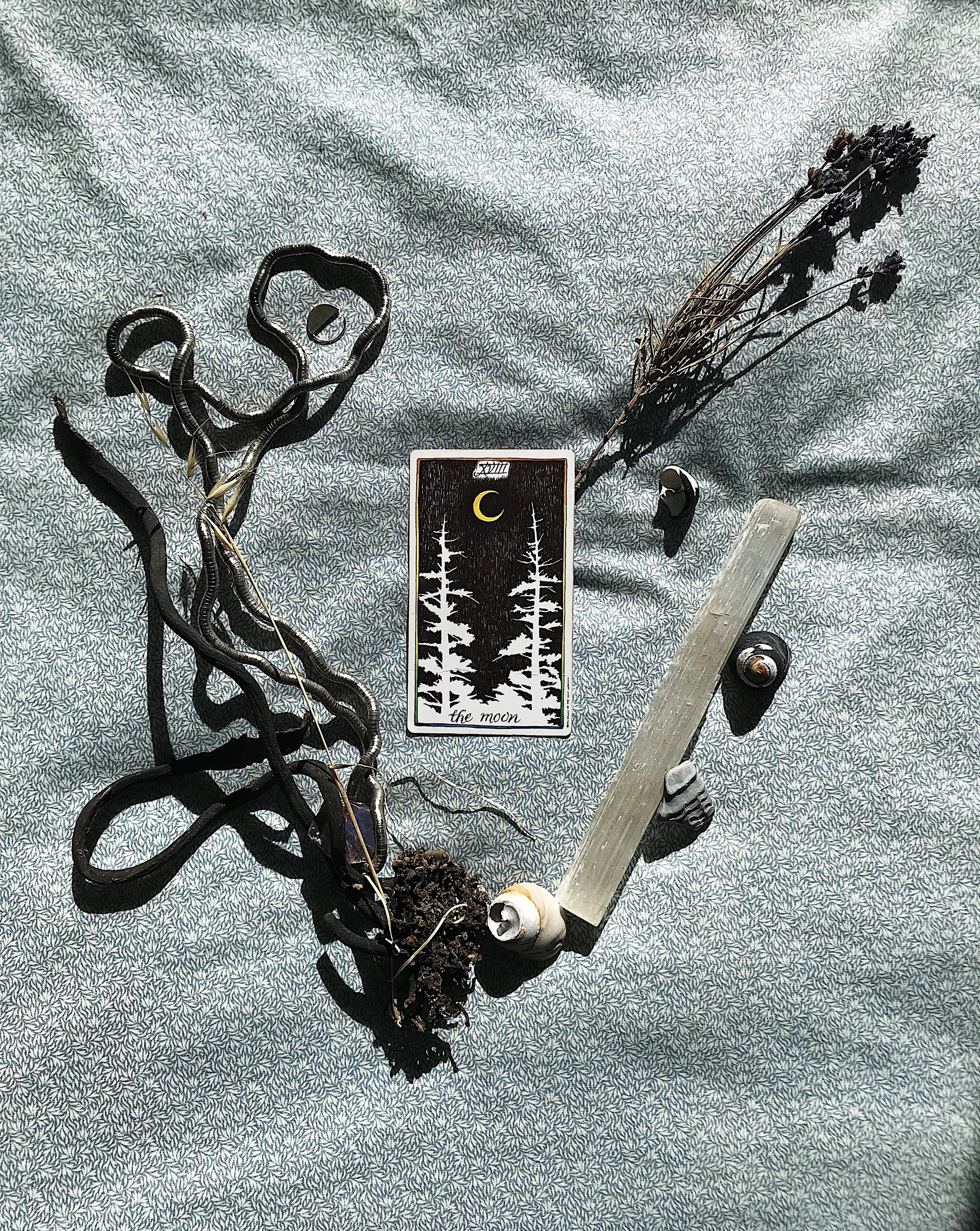 The Moon is a sight for all that’s unseen. Asks our willingness to dip into divinity, even when it seems like a practical destruction. The Moon is the primal mother, protective of her kin. She is the wild woman embedded far into our core. The most sensate part of our souls available to do the work. She works outside structure, external of time. She rejects reality by questioning it. Concerns herself with clarity by being it, despite determined blowback when things feel too big.