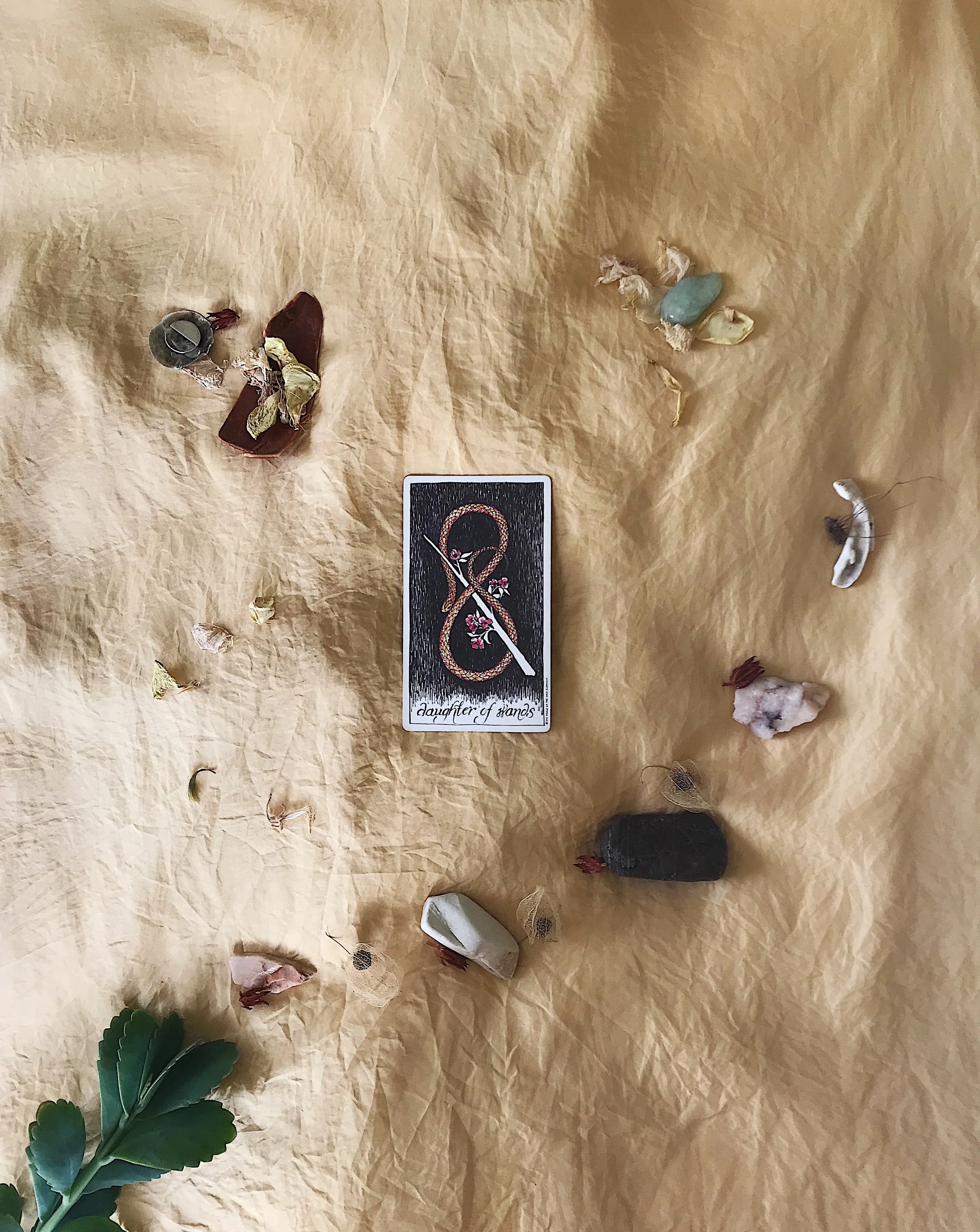 The Daughter of Wands is a student of sorts. A pupil of passion. A scholar of creativity. A fellow of faith. This week, allow yourself to overcome obstacles by yielding to them. Adapt. Shift the angle from which you experience a story. Allow your feelings to be valid but do not judge them. When we place a judgement on something, whether good or bad, we validate it. We make it real. We’ve decided that it is true. Truth is not bad. But truth can also change. If you want to change your truth, you have first remove judgement of the truth you’ve tried and treated. The work of the Daughter of Wands is to yield before judgement. To pass over passion with patience. To change her external world by focusing her gaze inwards over her heart. This week, hold your heart without reasoning or trying to rule it. Get truth right by refining, revisiting and redesigning an infinite number of times.