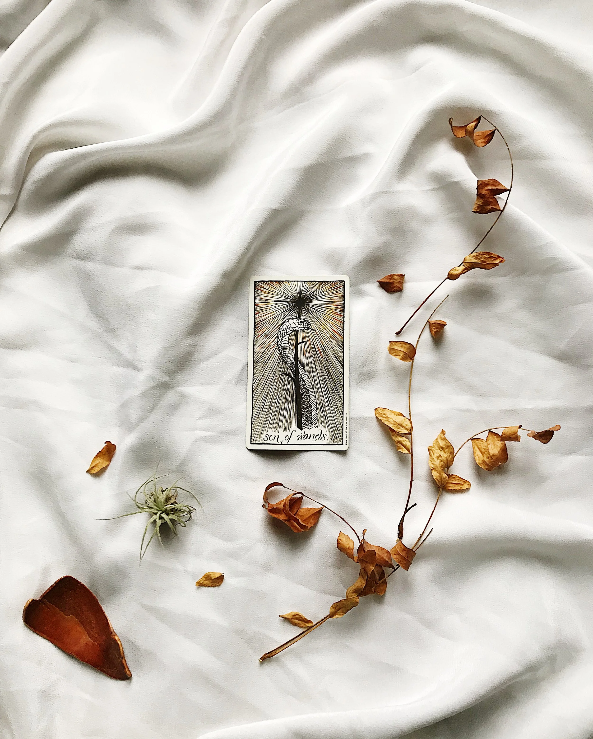 The Son of Wands wants us to wander. To put the charm in chance and drive with direction that doesn’t have just one destination. To crack open our truth and trust when it changes. To share where we’re at even if it’s insecure and unstable. To get good enough for now and allow good enough to be really fucking good. To work it so it works us, even if we have to do some wiggling through the room and back again.