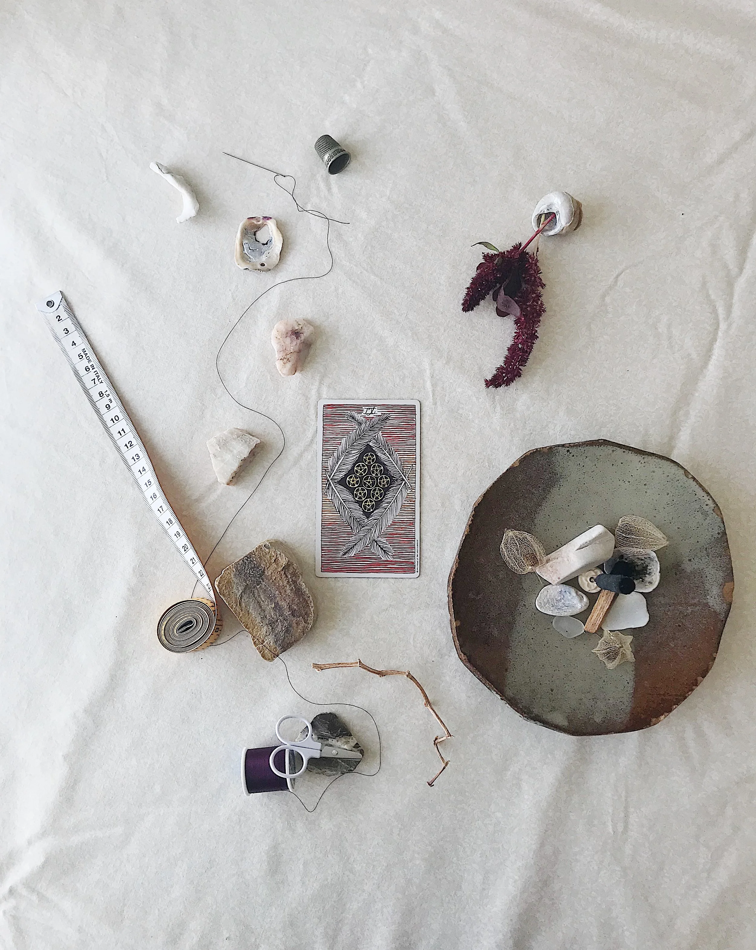The Nine of Pentacles testifies to the tasks that must be tended to now in order to nourish the future we want to feel. It is an intricate plan put into slow and patient action. It speaks to the immeasurable riches which are unique to each of us. It reminds us that one individual’s idea of treasure is another’s torment. It requires devoted focus on ourselves. Some say that the nine is about sacrifice. But true to Virgo season tactics, the Nine is really about critical choice. It asks us to fortify our bodies and souls for a stretch that lies far beyond the next sprint. It is the nest we make now that strengthens the flight immemorial later.